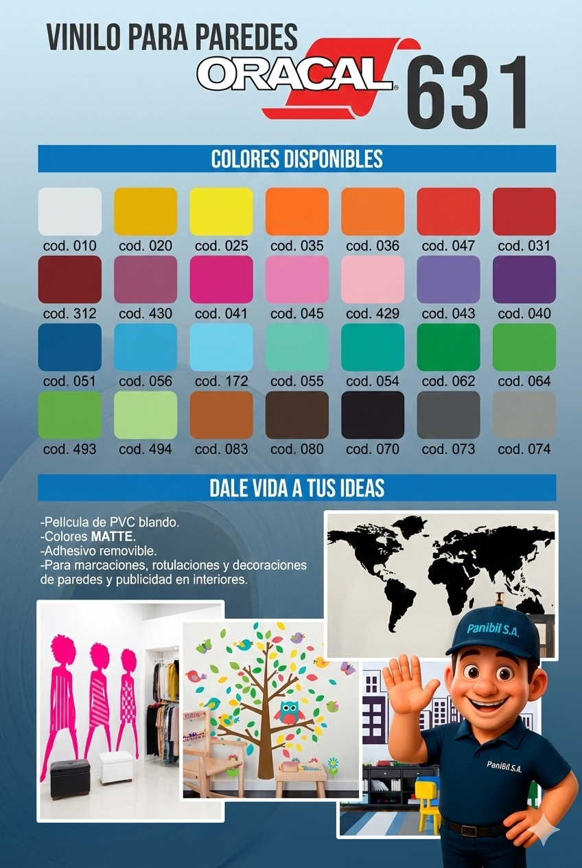 En Todomax by Panibil S.A., sabemos que el color lo cambia todo. Por eso, estamos muy emocionados de anunciar la llegada de nuevos y vibrantes colores que se suman a nuestra ya extensa paleta de Vinilo para Paredes Oracal 631.